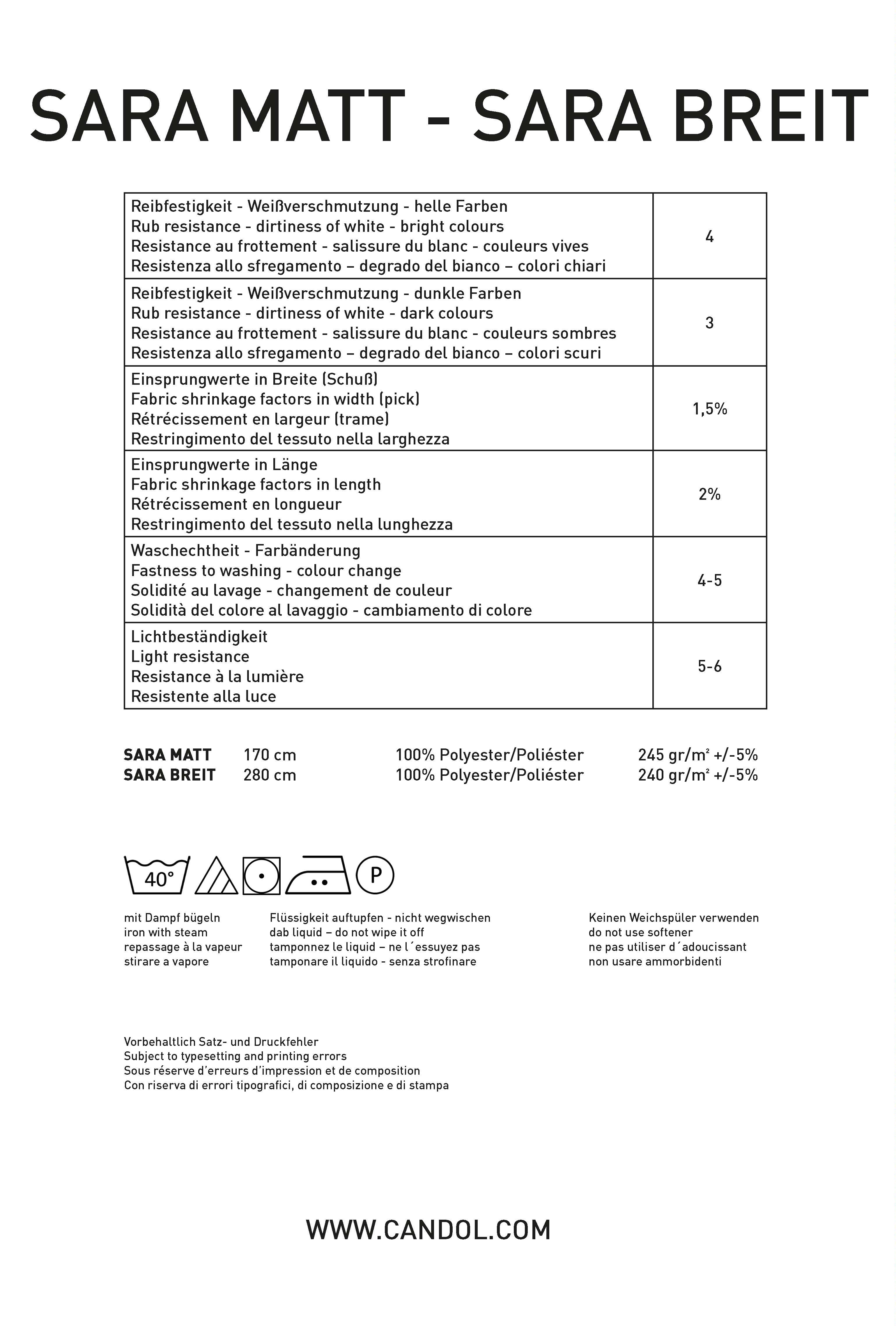 Breitsara matt mit der Breite von 280 cm ist erhältlich in den Farben bianca und champagne.