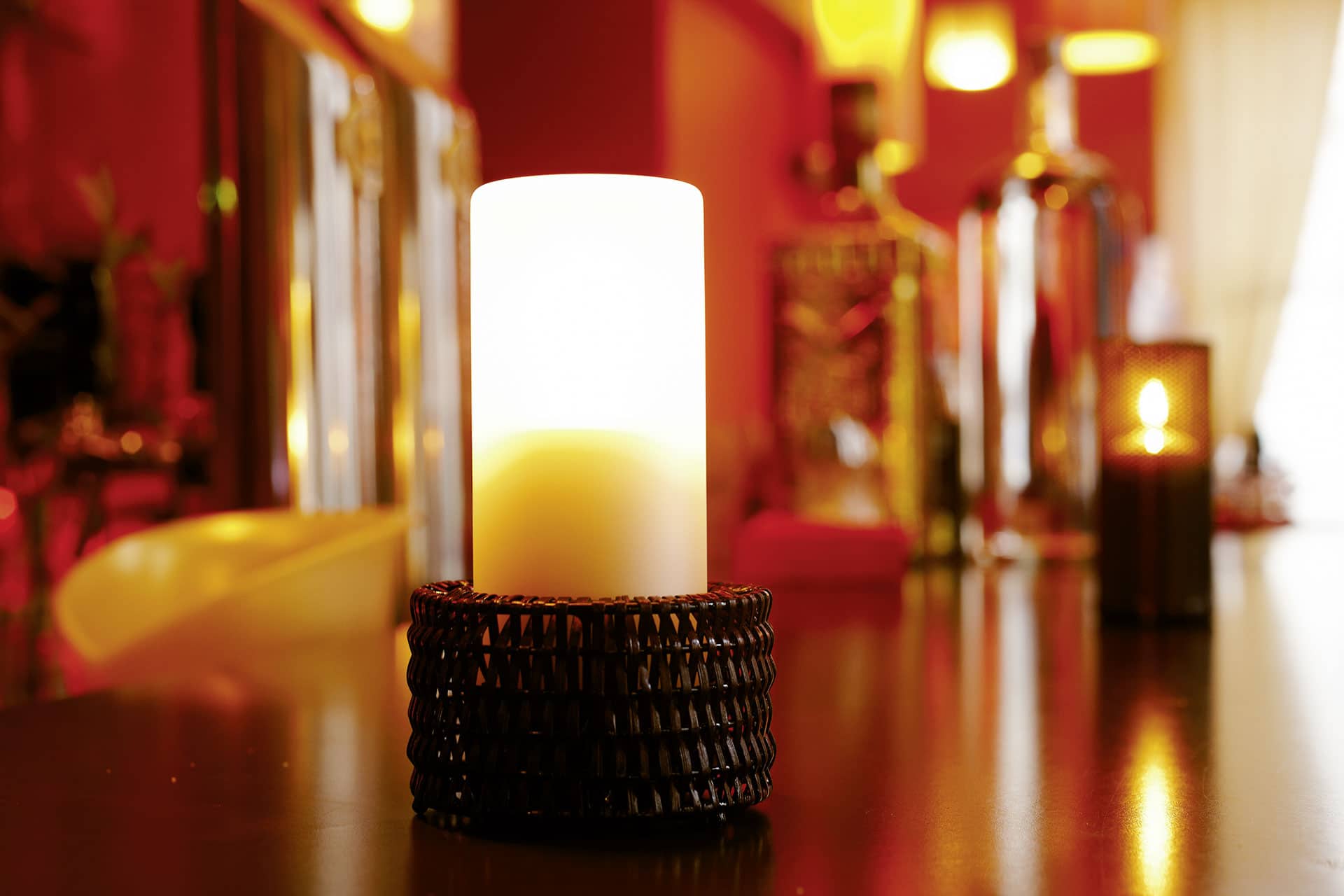 Nour mit Rattanfuß passt perfekt zu entsprechenden Loungemöbeln im Garten wie auch im Innenbereich.